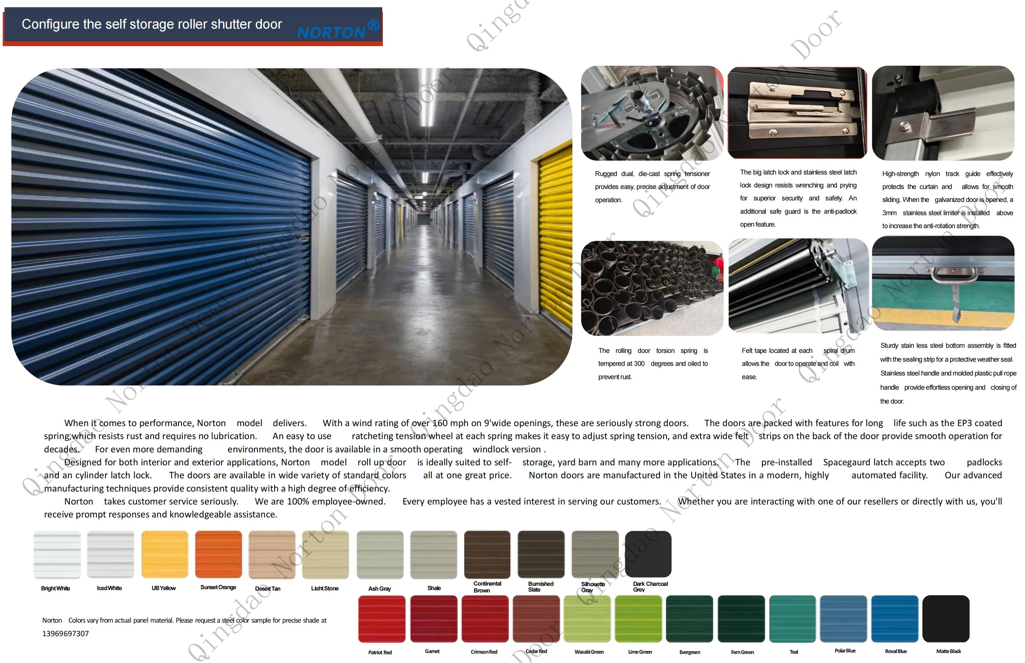 Qingdao Norton scriptor Custom Manual sui repono Steel Rolling Dors Blend automation technology cum summus qualis ferro, offering vires, corrosio resistentia, et ventus pressura tolerantia et stabilitatem et salus. Et nuper developed manu-ducit torquem accessorium faciliorem facilis elevatio et claudendo. Nativus ad users ianua ostium dimensiones, haec ostia ensure perfectam fit et optimal signantes. Cum features quasi anti-tamper, weatherproofing (pluvia, humorem, frigus, sol) et sonus velit, conveniant diverse environmental necessitates, maintaining optimum specie et perficientur.