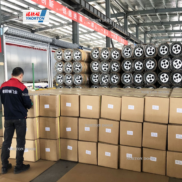 Interiore iacuit tutela: layer bulla wrap ponitur utrinqueCollior Shutter PortaUbi finem caps installed, et ostium est tunc involutus cum bulla wrap ut providere an initial buffering effectus.